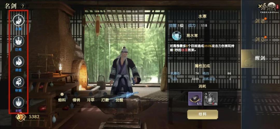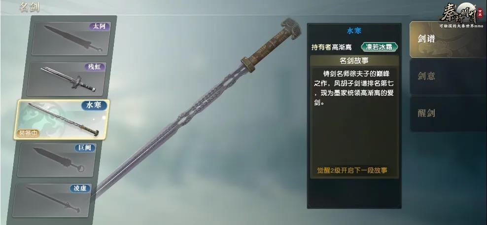醒剑界面同样新增了已激活名剑总战力显示,并优化了名剑切换的UI按钮样式,缩小整体文字占比,使整个界面给人感觉更加清爽。