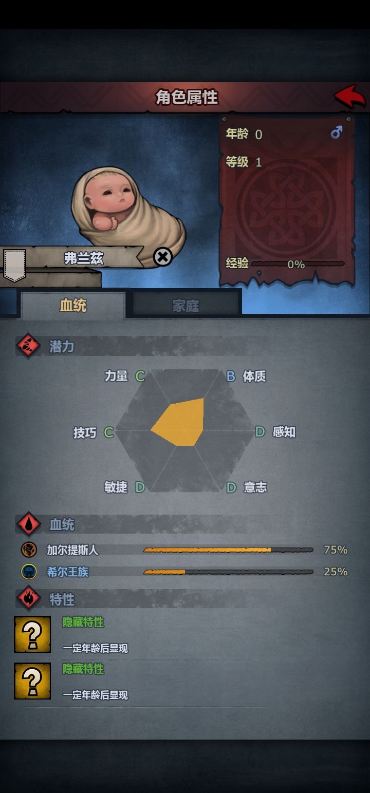 此时我二儿子也出生了,希尔25%+B体,还不错,长大当方阵步兵再考虑禁卫