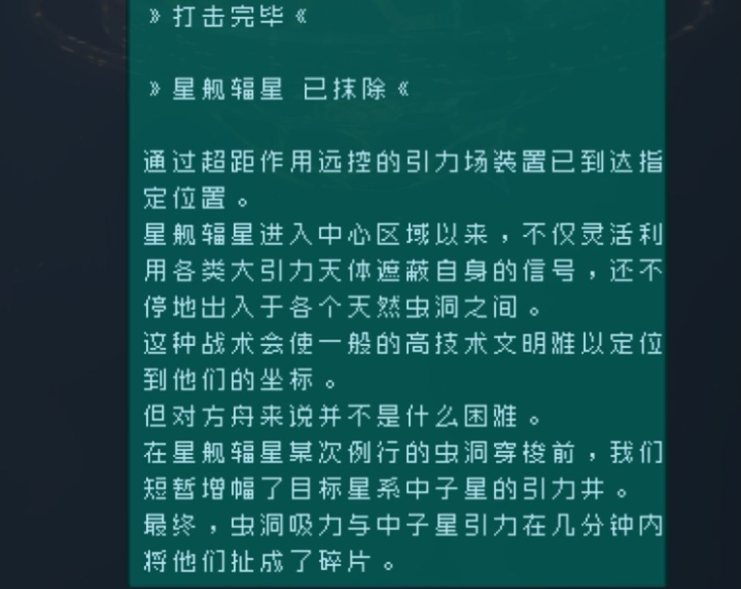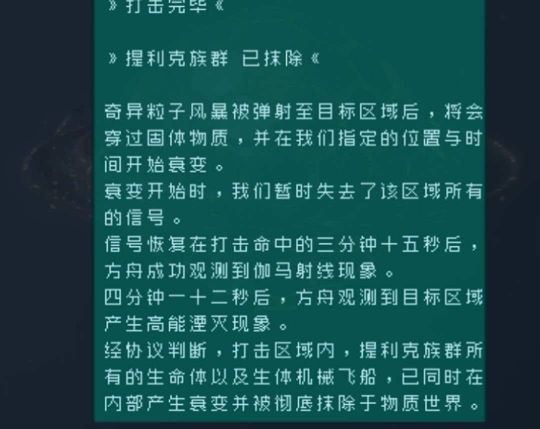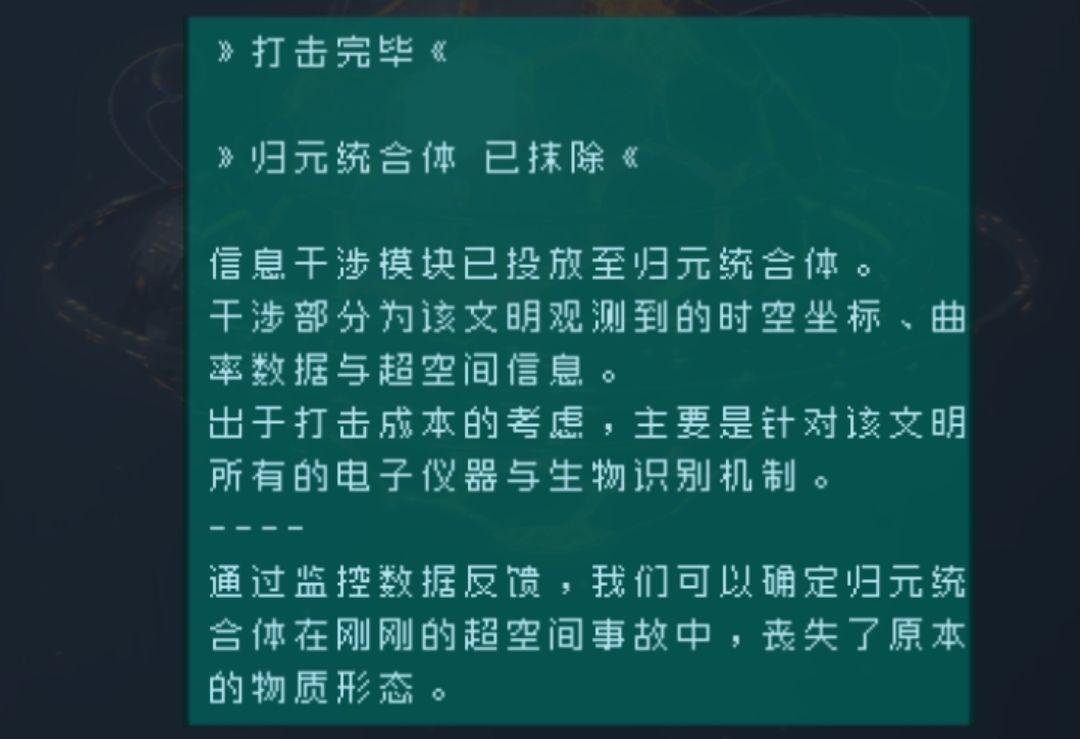 打击了提利克、一号废土后裔星舰辐星 、四号墨星的归元统合体。