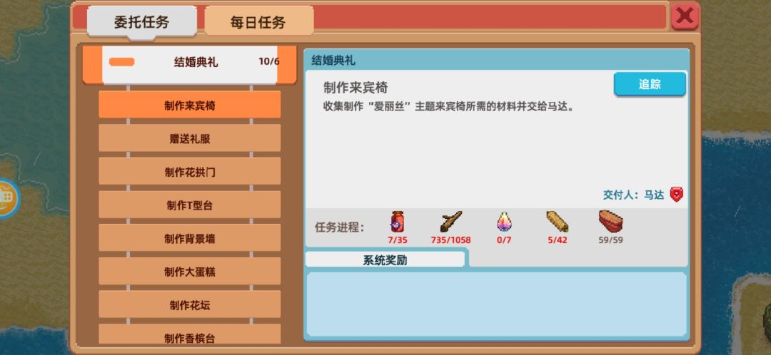 统计到这里就截止到目前为止,我要去肝材料了。而且我突然发现改版之后如果想结婚的新玩家好惨,因为这个蚕丝架你们目前上限只有1。我看了一下这个婚礼的所需的蚕丝共123(相当于是你们要花费123天游戏里时间),太惨了🤔。