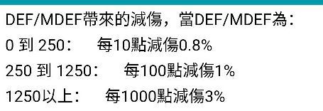 (从论坛大佬那里拿来的)从这里我们可以看出防御只需要堆到1050~1150左右就可以了(这是我亲身实践出的最平衡的点数),因为堆到1250会缩小你选择装备的空间。高于1250更是不用考虑,因为受益低到爆炸,精个B都比堆到2250有用。所以一旦双防堆到1100左右便可开始堆双抗了。