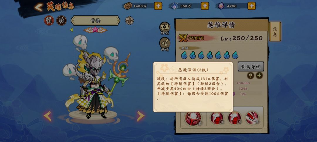 三技能每回合增加29%攻击和4%减伤(持续六回合),且对战士有额外伤害加成,战士克星。但必须存活到第五六个回合才能发挥作用,所以队友很关键