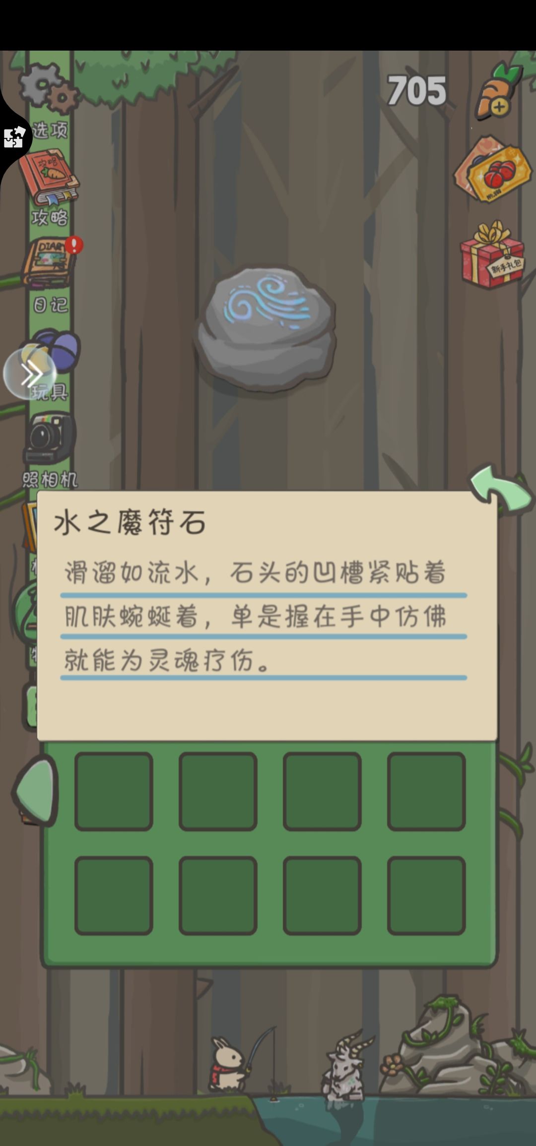 至于怎么进森林,好久没玩了差不多忘干净了,主要是指南针(快速回城)和登山杖要买,其他的我忘了,不过棕熊那里都有,可以去搜一下