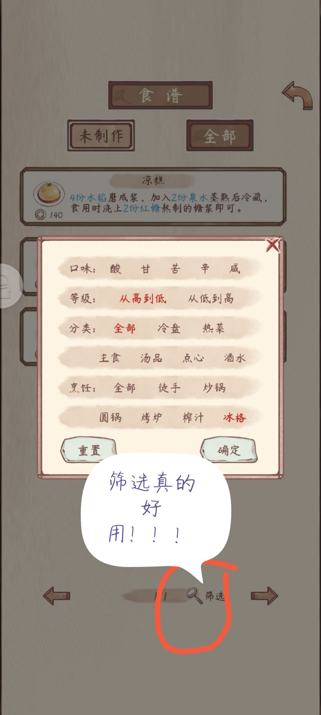 然后中期就攒钱,解锁烹饪手法(集市的工具),然后就慢慢种植,解锁菜品,解锁图鉴!收集类游戏!真不错!