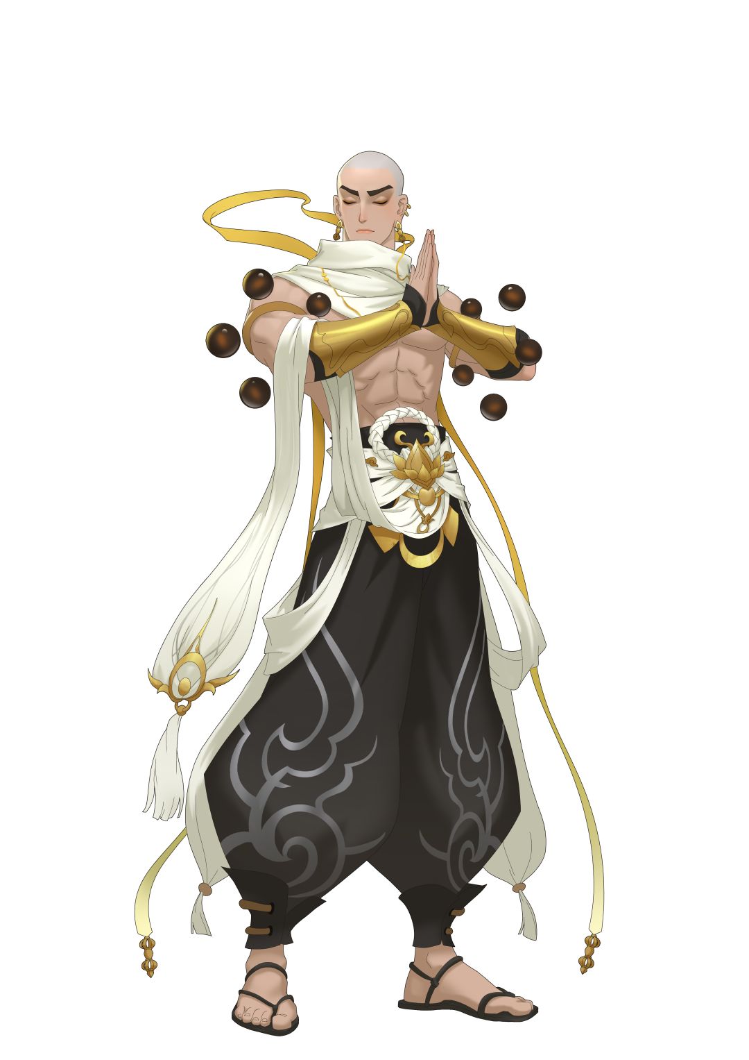 被动技能禅定叠身,每被攻击1次,增加自身防御,最高叠3层,持续10秒。符合其“越挨打越硬气”的特点。