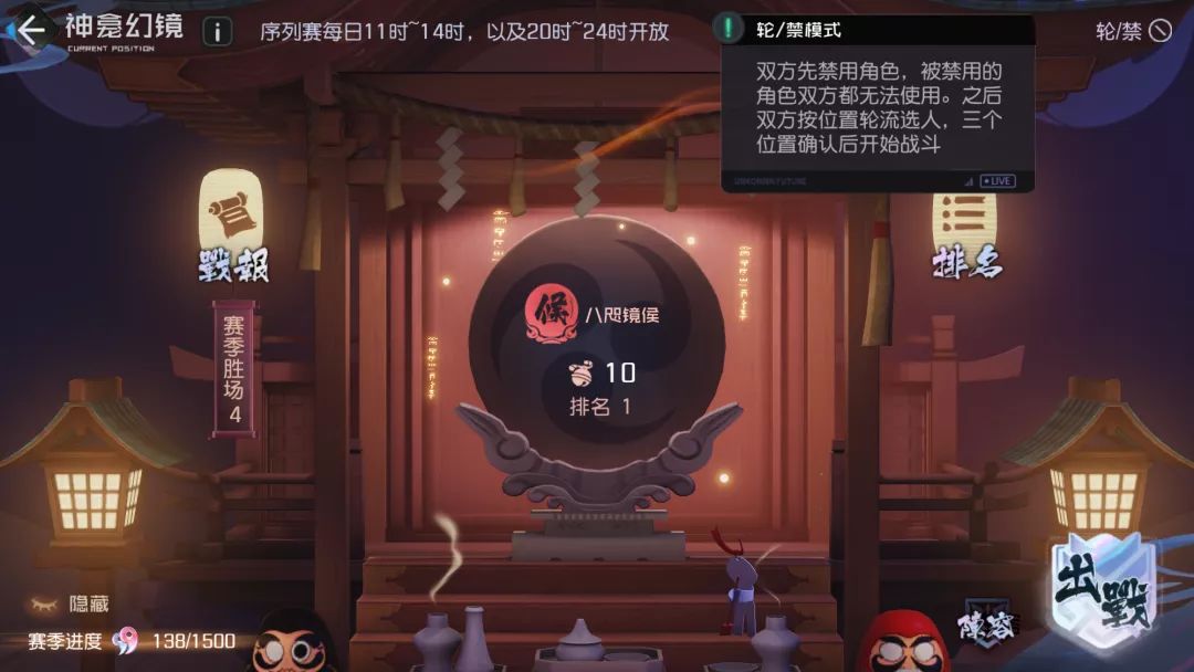 在神龛PVP的积分突破冠序达到八咫镜侯时,在每回合开局前会进入一个新的机制。