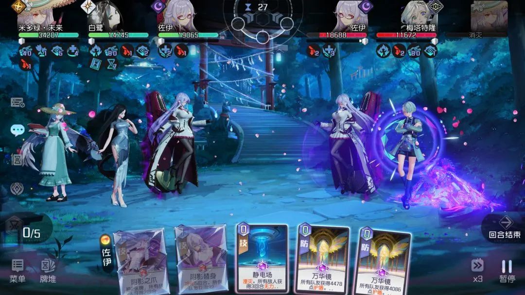 当面对这一波满屏AOE伤害时,还是吓了一跳,群秒能力一流!能搭配上这套组合的应该不多,大多都是神社金卡。大冲AOE套路是由三人共同组成,只要提前击杀其中一人,就可以将伤害降低。