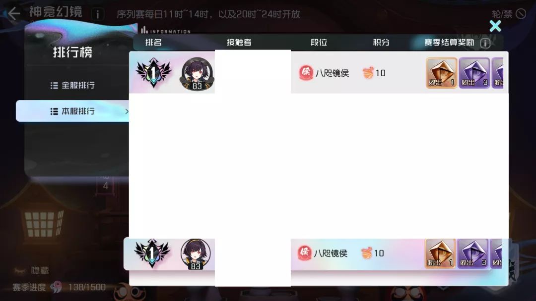 截止发稿前,攻略君在神龛PVP的本服排名中暂列第一。
