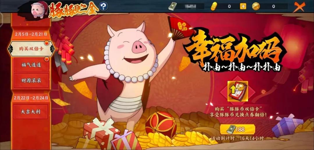 ⭐活动内容:参与活动获得“豚豚币”,“豚豚币”可以兑换等额点券,购买“豚豚币双倍卡”可在兑换时获得双倍点券!