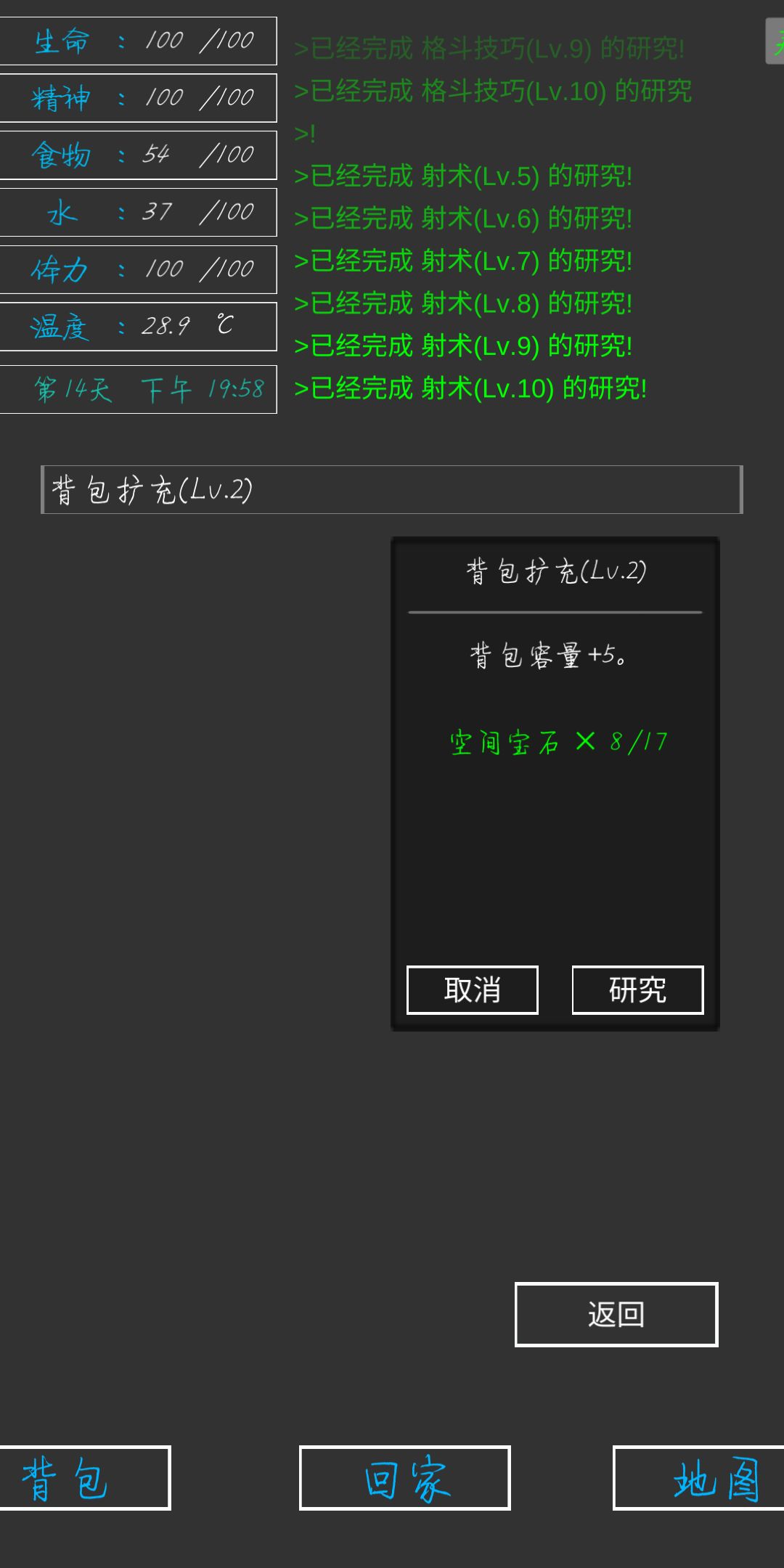 当我在升级第一个的时候想看一下,别的升级要什么材料的时候我发现只要快速点击别的科技两下,就可以直接升级别的科技