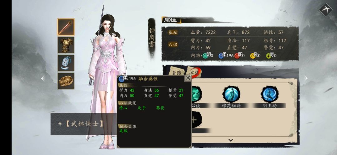 存档是大佬改的初始档,装备比较好,就洗了一身柔给小雪,做完任务看是有柔域的,切换个场景就变成以柔了???这是怎么回事啊