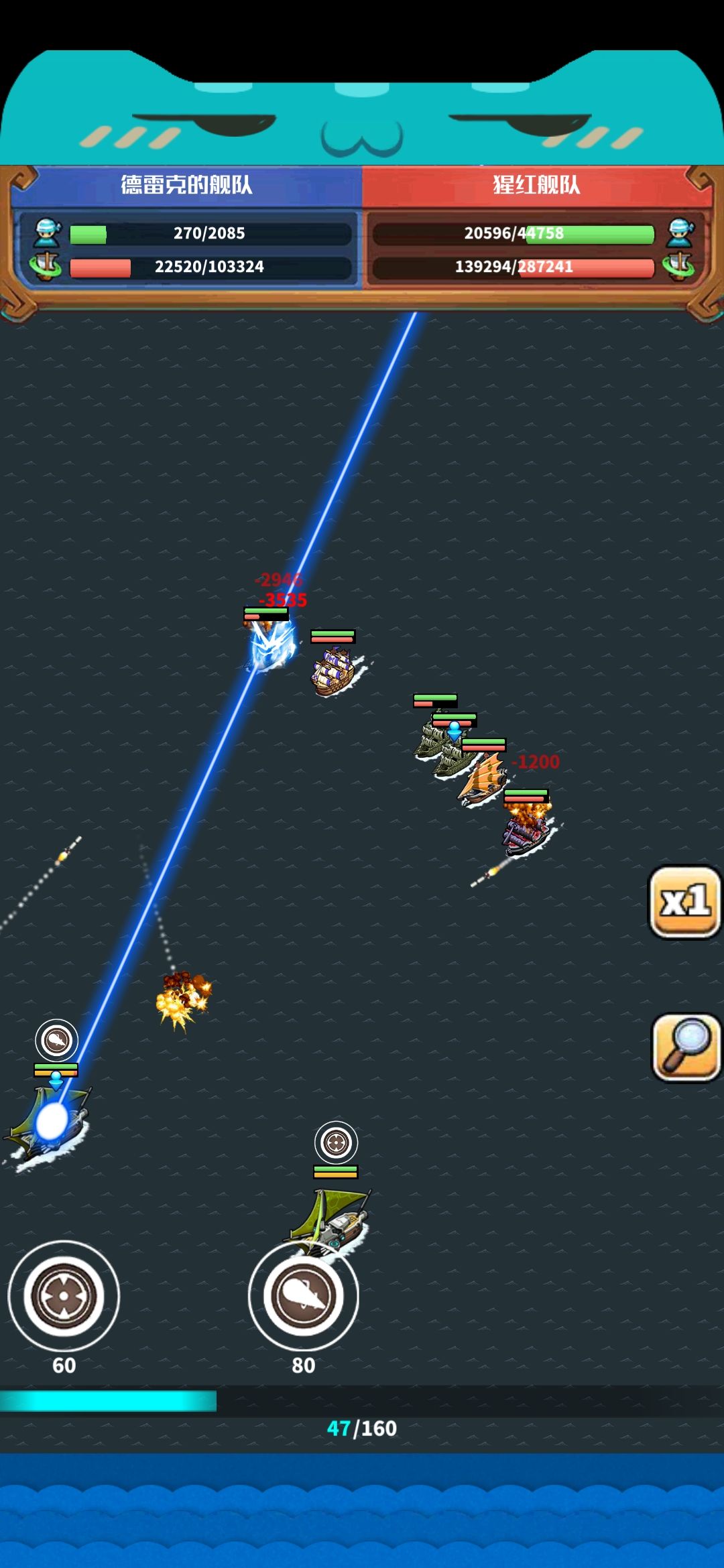 一炮旗舰大概能打掉60%(请看旗舰旁边的那艘船,挨了一跑),带走必须两炮。