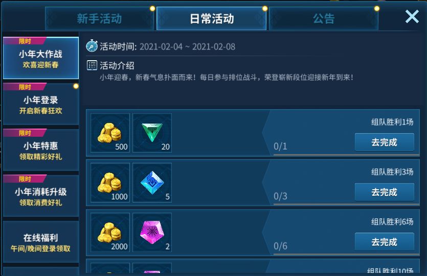 小年迎春,新春气息扑面而来!每日组队参与战斗,荣登崭新段位迎接新年到来!