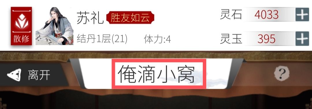 ①洞府命名:洞府最上方的空白处是可以命名的。