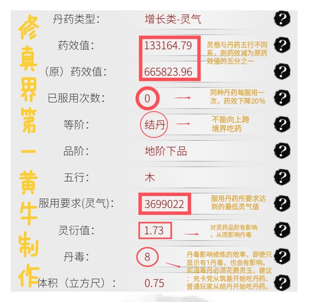 市场需求、增灵值、增灵值与灵气需求值的比、丹毒。