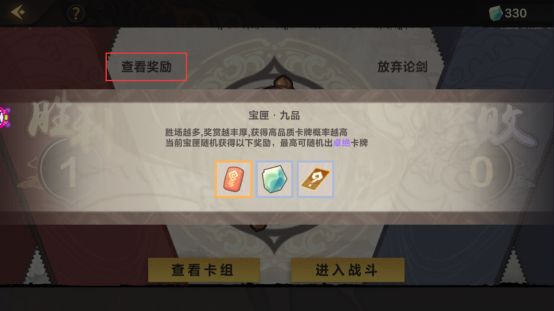 A:论剑台模式下,胜利12场或失败3场后,一轮论剑台便结束,根据总胜场决定能够获得的奖励,胜场数越高,奖励越好。