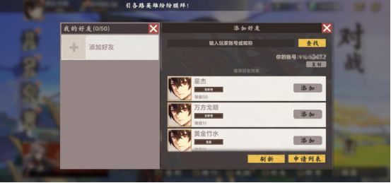 A:通过点击主界面右下角的好友,进入好友界面,再通过添加好友输入想要添加的好友的名称或ID,即可申请添加好友。