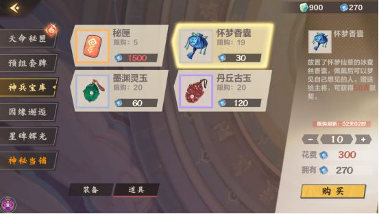 除此之外,谜尘还可以在商店-神兵宝库-道具中兑换秘匣及用于提升默契度的道具
