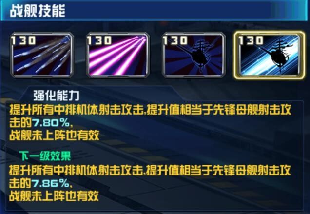 提升所有中排机体射击攻击,提升值相当于先锋母舰射击攻击的7.80%