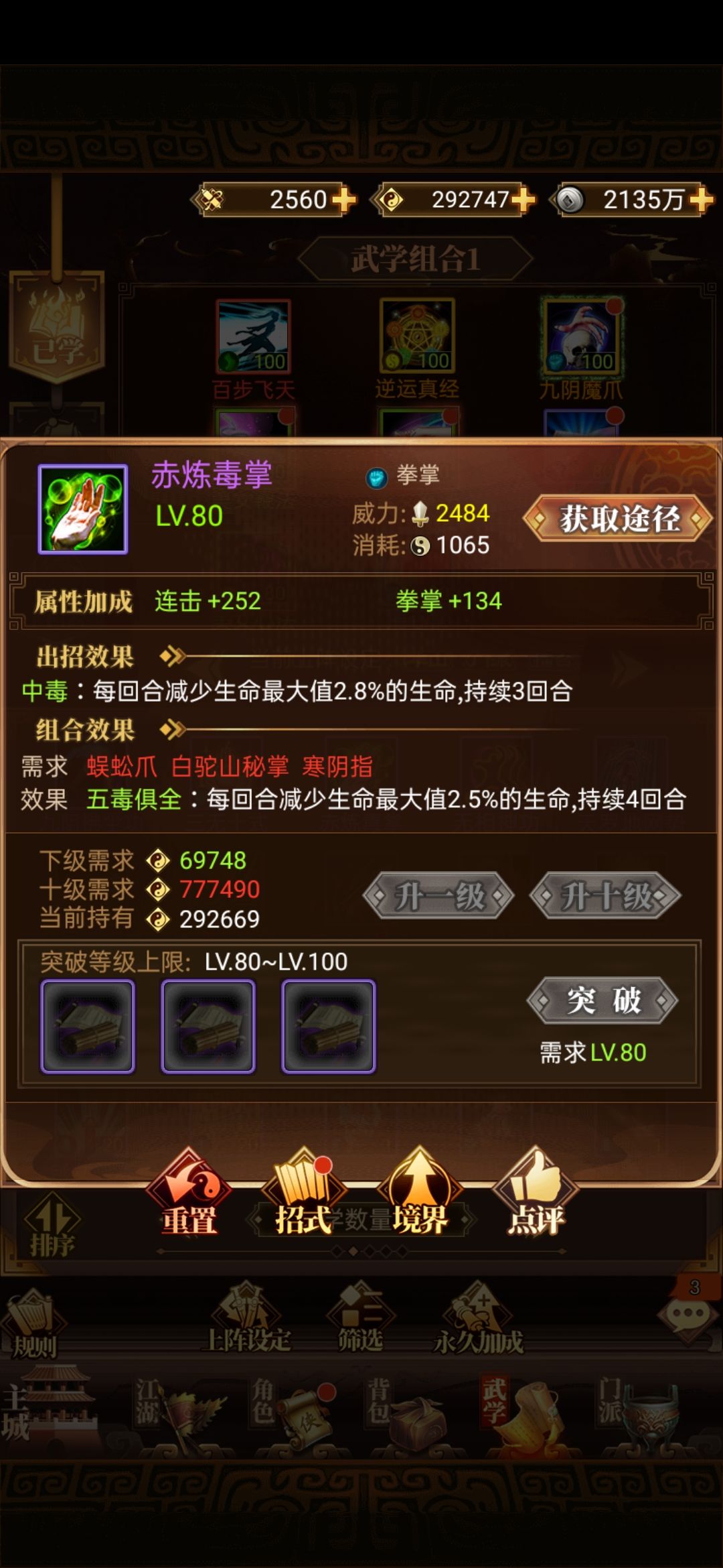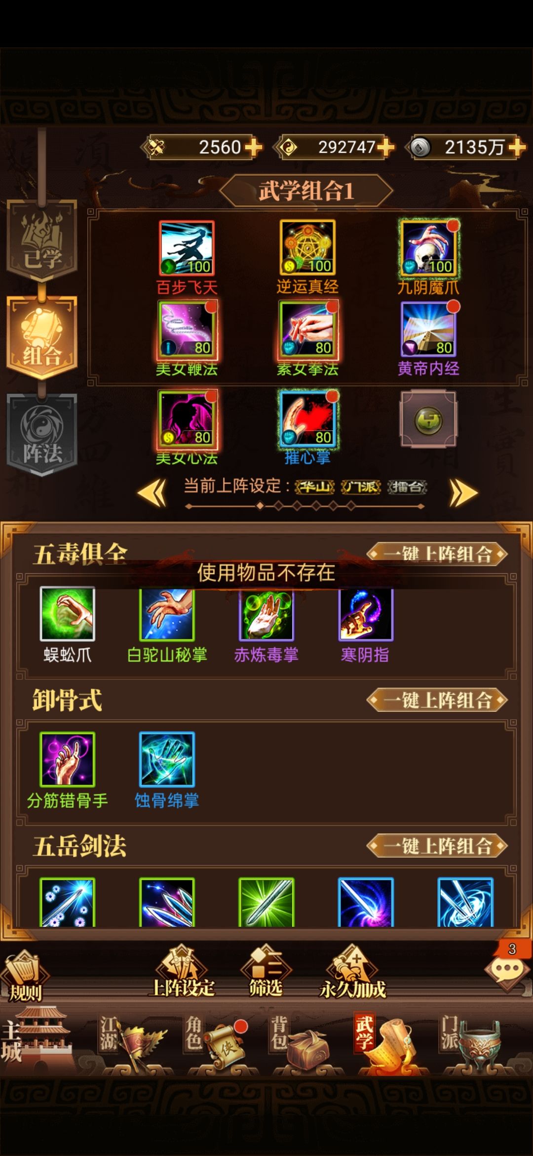 门派商店白门和绿门要买满十层,每天建议刷新完100元宝的,四天左右就十层,十层的绿门比0层的没组合的金武好点,野球拳不用买,要买满太贵,不适合平民。这游戏针很重要,建议每天把加生命的针扫完五十元宝的再去刷武学碎片,血刀还要刷攻击针。