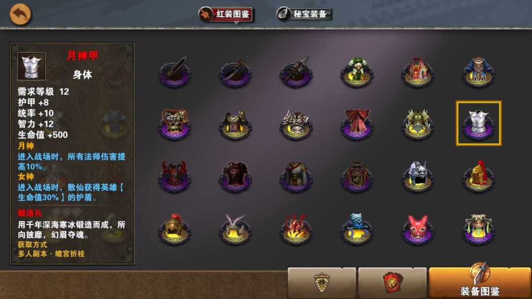 月神甲8甲10统12智,500血。月神,进入战场时所有法师伤害提高10%;女神,散仙获得生命*30%护盾。
