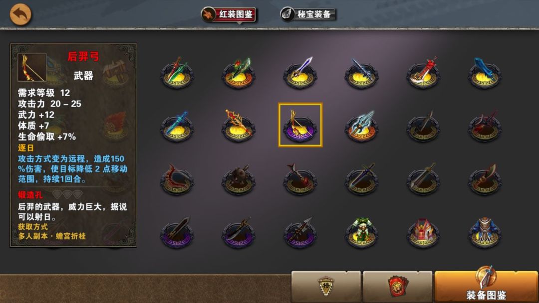 作为竞技场最火热的装备,后羿弓几乎是太史慈专用,在配合太史的连珠箭叠加能够打出巨量的伤害,配上两三组鹰卫,一回合射谁谁死,以一己之力让遁甲玄月等隐身猥琐型配装成为主流。在伤害模型中最高的武器。其他武将,只有黄月英周瑜可以用用,但还不如原来的毒弓龙胆。
