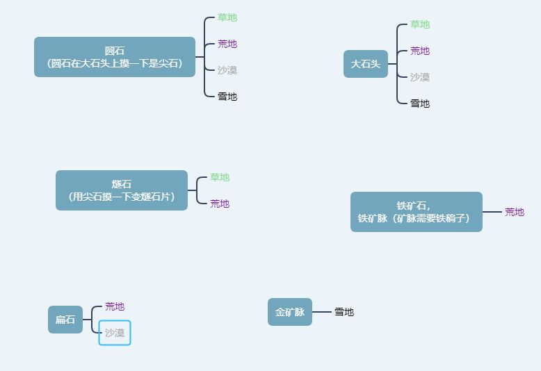 版本现状是,前期只有圆石,燧石,扁石,铁矿石有用,其他的你看到别拿啊,拿回家也是占地方浪费时间
