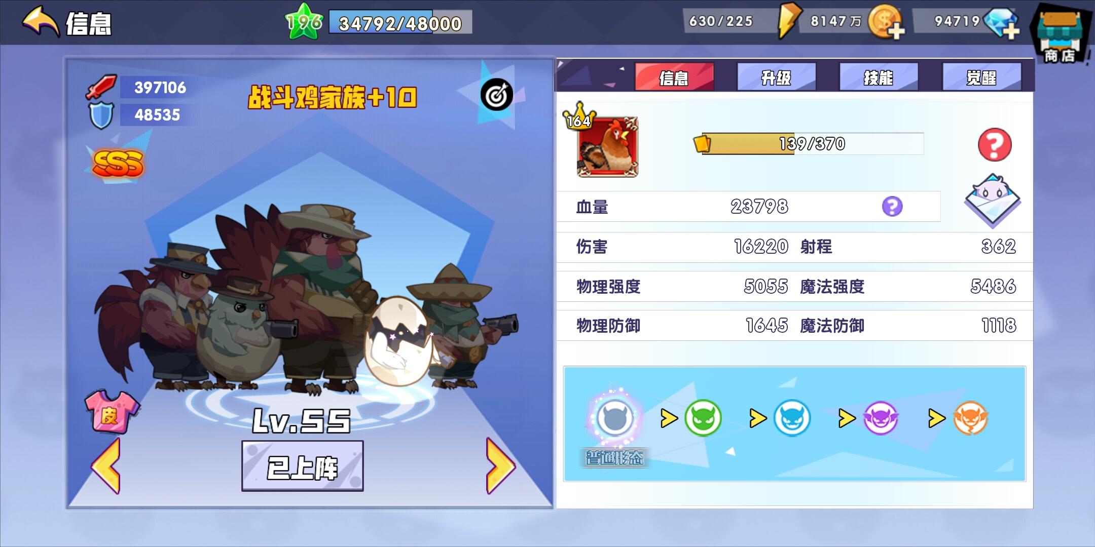 如图,这是在精英92关的一个岛,图二图三是在图一上点开的属性图,鸡才2000不到的强度,而且是史诗形态。