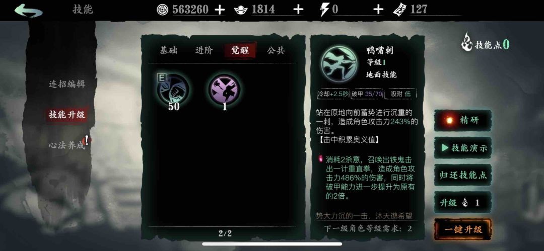 觉醒满,进阶技能除了铁公主版奥义全满,铁公主奥义1级就3000%,满级才3800%,而且主要是强晕和破盾,没必要满。基础技能里加伤害的点满,最后剩下的加极隼。这个搭配不需要+1杀意护腕,傻子才带40级护腕!饰品洗个极隼+1杀意就ok了。