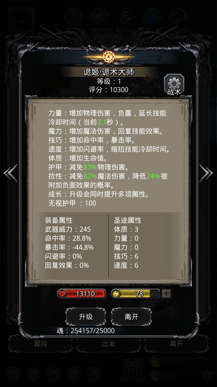 减治疗95% 诡术减技巧1682(没有日传猎所以上的诡术不知道有没用)源兽回血9202