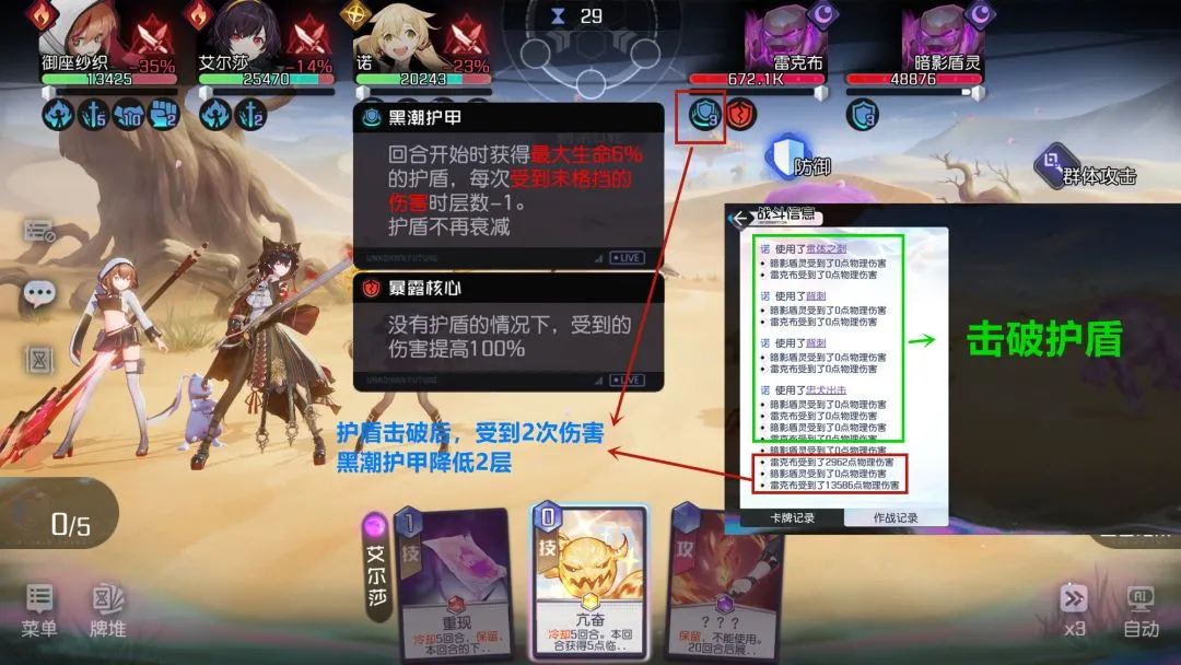 4、特别需要注意的是,在护盾击破后,黑潮护甲的状态是依然存在的,需要继续进行伤害才能降低层数,直至消失。