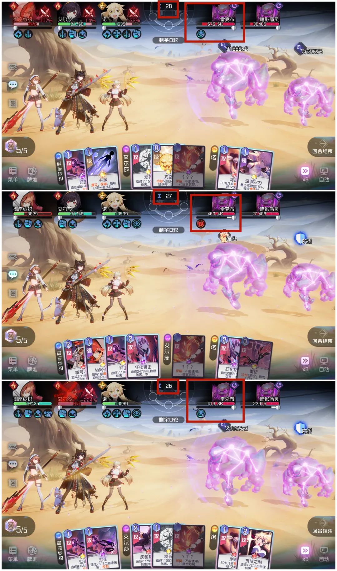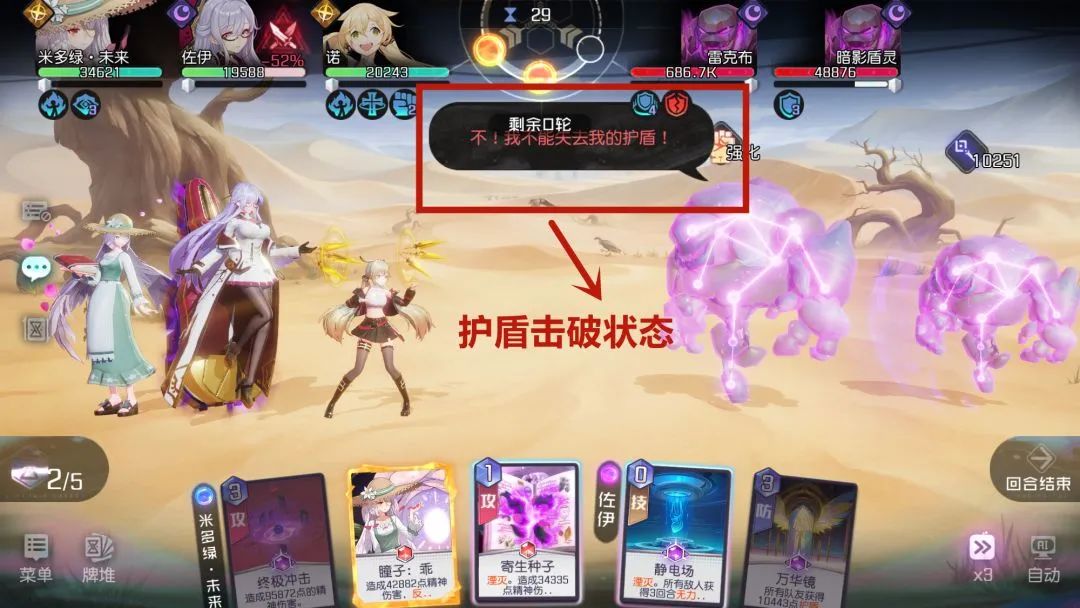 把BOSS的护盾每回合清零,让BOSS变为非攻击状态,并且获得Debuff,让角色可以肆无忌惮的一直输出。