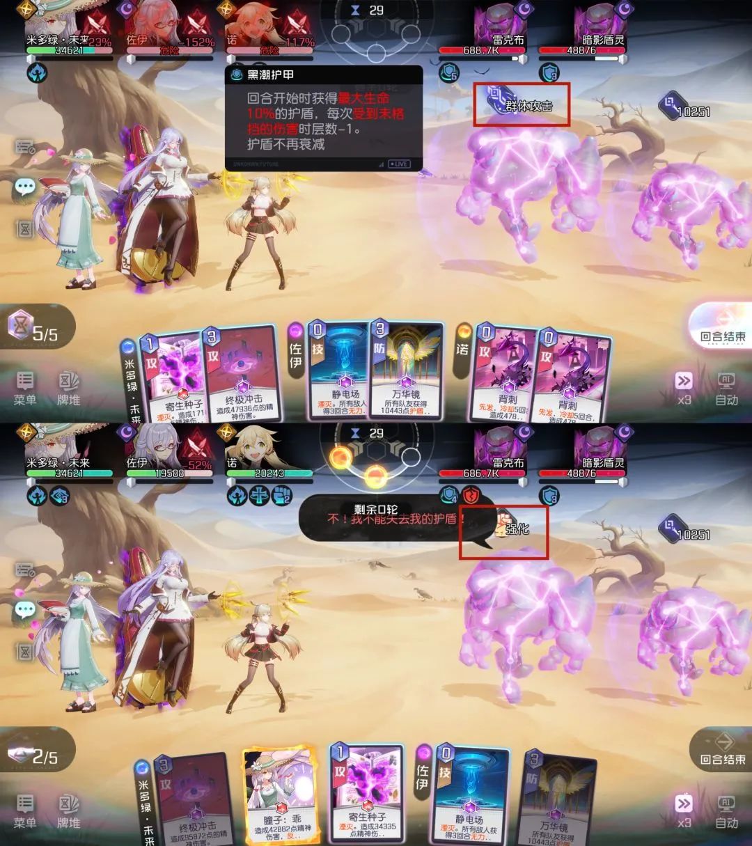 5、黑潮护甲的状态消失后,还是会重新恢复,每回合开始时恢复2层。