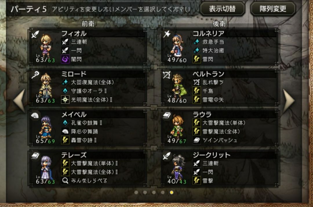 2位奶妈+全体魔法(补输出)。3位攻高的全体攻击角色(属性推荐火雷,物理应该是匕),4位学者全体雷魔法