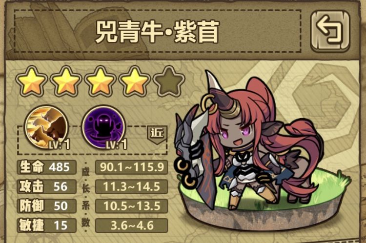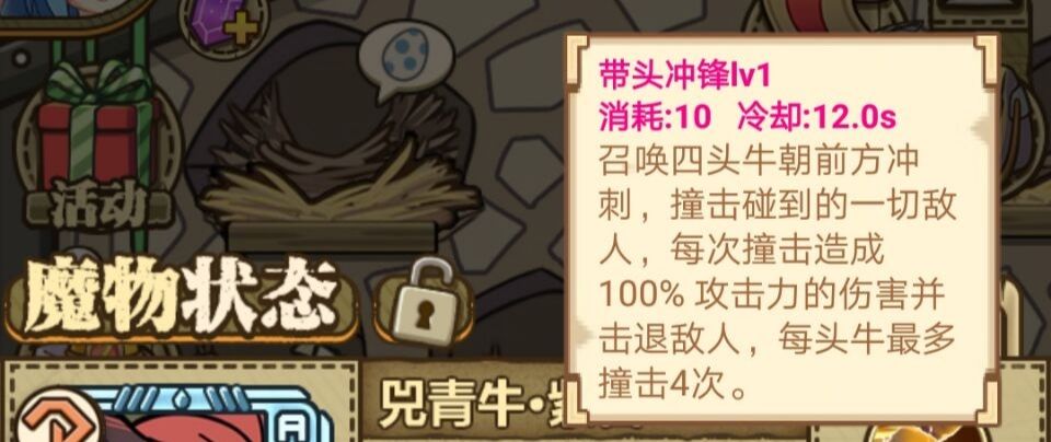 牛牛属于收藏魔物,一技能是太太超级简化版,二技能是减敌人攻击和减防御,没有任何其他特点了。