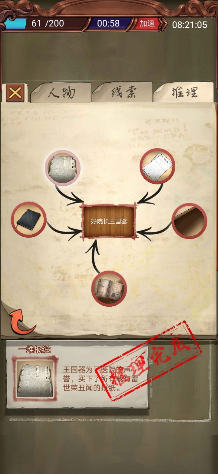 大致讲一下游戏的玩法,就是寻物然后过剧情,推理的时候没有多烧脑,代入感很强。物品我都截图了但是想想还是别放上来了,寻物这部分没有难度,且完全可以看广告获得提示,大家可以点点广告让开发商恰饭。