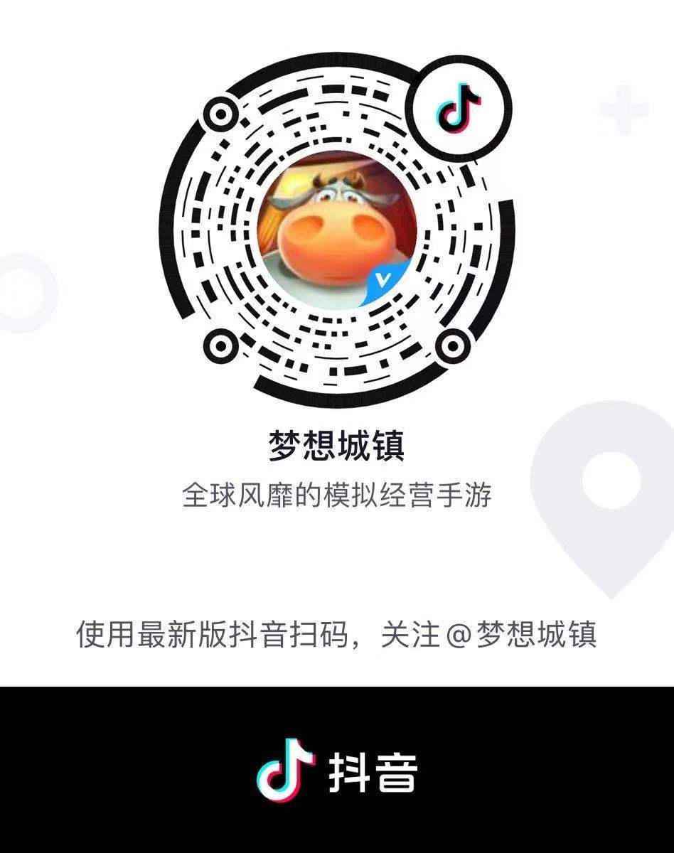 《梦想城镇》官方抖音账号开始营业啦,关注官方抖音账号:梦想城镇,参与有奖活动,赢取黄金通行证、绿钞等奖励吧!