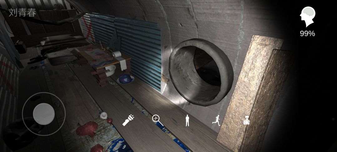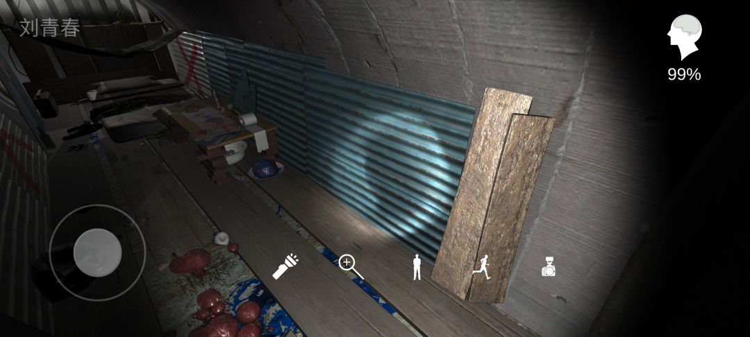 然后去推开床边的瓦楞板,如图[手电光圈照射的位置]