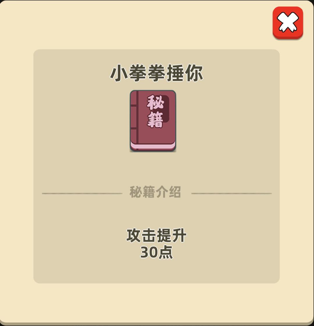 所以玩家们在前期的秘笈选择上,最好选择进攻性的秘笈,例如【小拳拳捶你】等,在消耗一定量生命值的情况下,进行强攻直接斩杀是可以接受的。