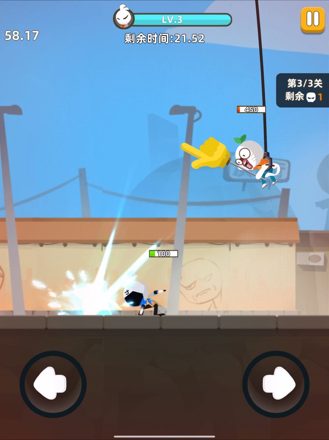 需要注意的是,王尼玛吊上威亚后不会再落下,70秒倒计时结束后会直接结束本关,浪费一次关卡机会。