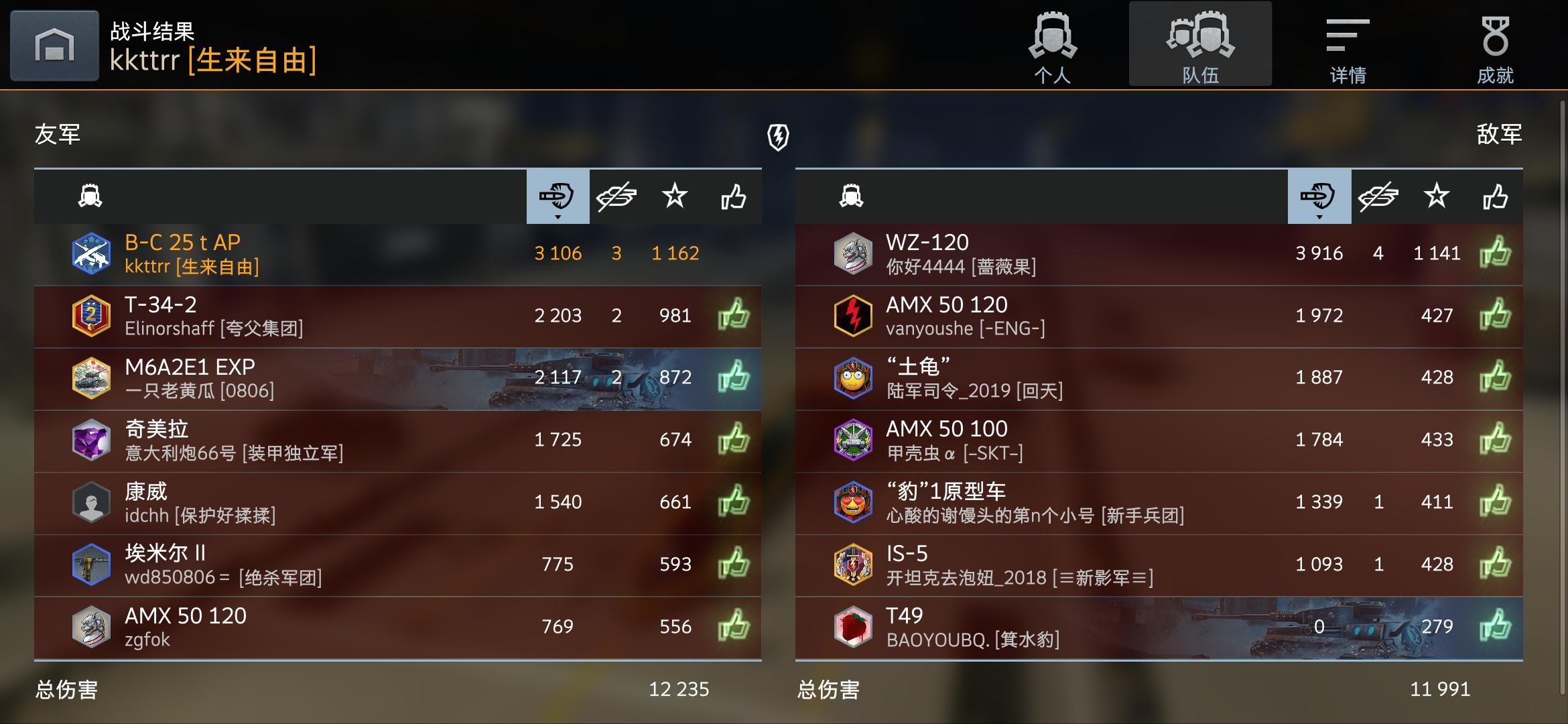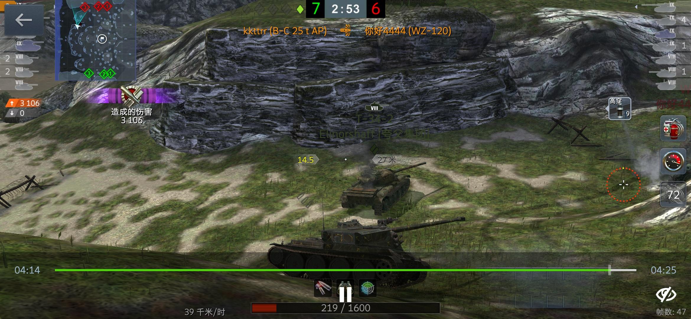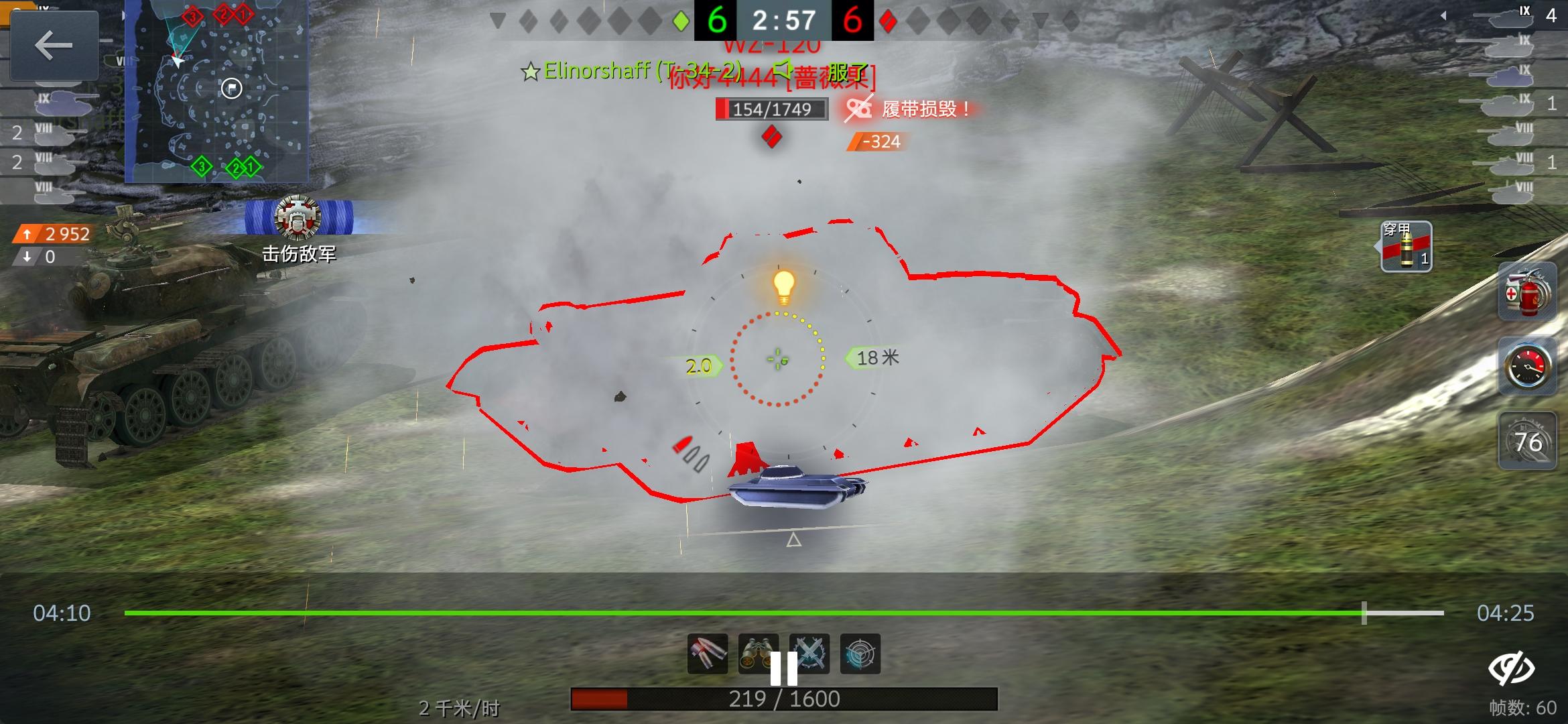 这把最后我和120单挑,我剩他一炮血,他剩我半个弹夹血。这不眼瞅着就要输了嘛,我趁他刚收掉康威。我一个偷袭,第一炮打断履带,他没料到,一炮打飞了,接着我毫不犹豫第二炮收了他。
