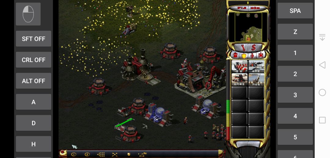正面防守没太大压力后就多做几个防空履带车放在基地左上的矿场里,用来防御盟军的空袭。