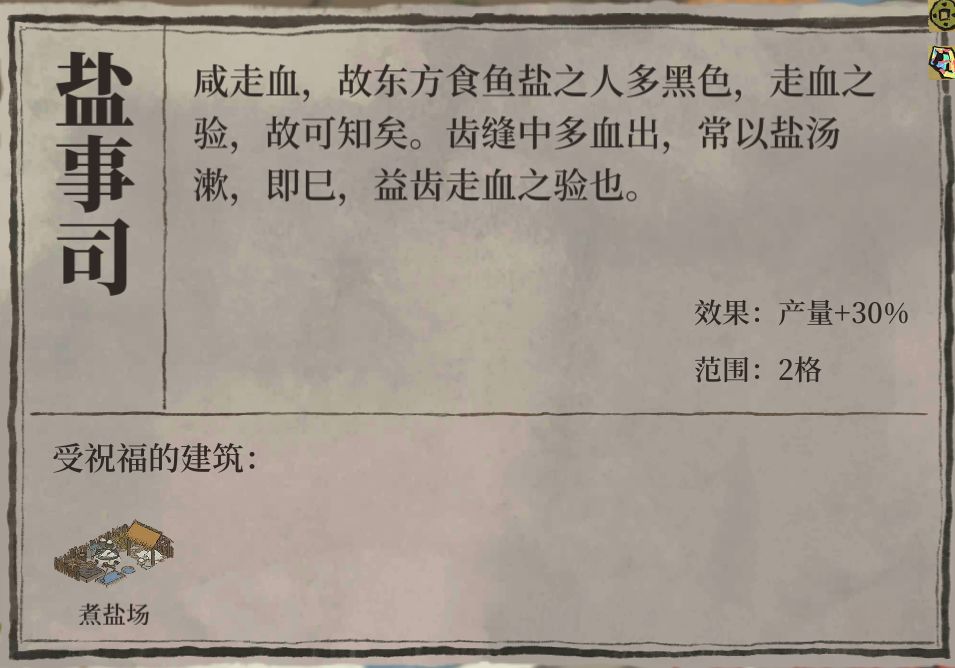 在保证盐足够的前提,速度获取盐引,从而升级到采购建筑!