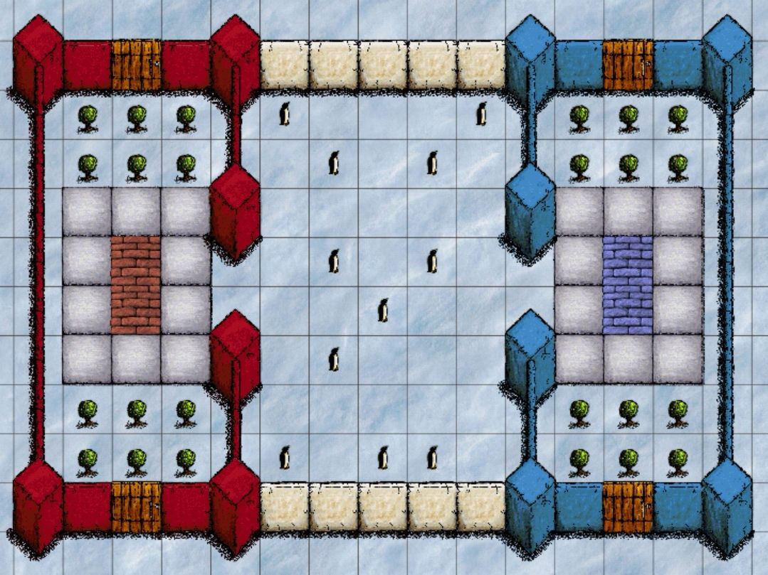 ②企鹅足球赛:选手分红蓝两队,中间区域共9只企鹅,率先获得5只企鹅的队伍获胜。