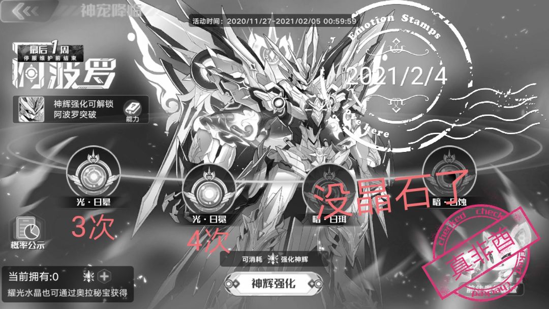 本来还以为可以一发入魂的,没想到终究还是我太天真了(因为之前阿波罗突破全保底,所以现在已经没晶石了)