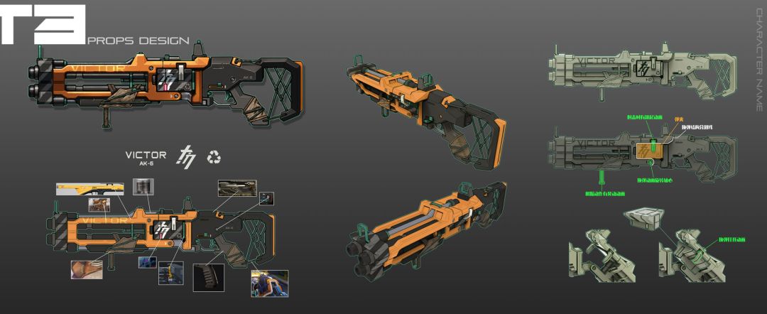 (还想看枪的话我再去偷^_^)在确定了射击体验后,下一步我们会考虑角色的核心定位,也就是战斗策略,例如突进、自保等,然后围绕这种既定打法开始着手相关数值与技能的设计,使之成为可行的战斗英雄。为此每位英雄在设计过程中,其实我们已经为其制作了成形战斗套路,比方说「网绳控制+高火力射击」组合技进行追击的斯嘉蒂,又比方说「冲刺击晕+近距离高密度散弹输出」的维克多等。相对来说都是比较简单易懂的策略,以便大家在接触这位英雄的时候就能迅速解读出打法,毕竟轻松休闲是T3的一大特色嘛~
