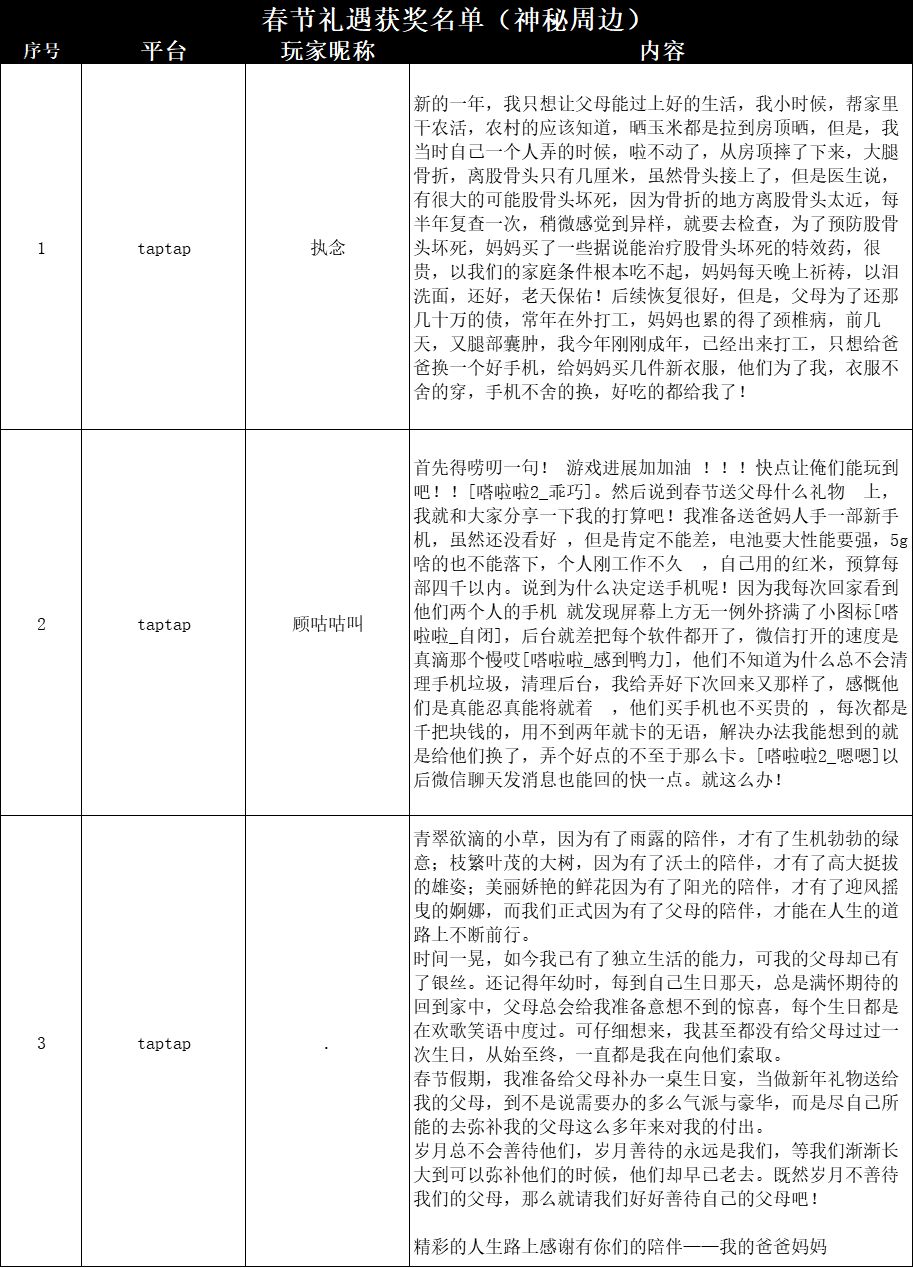 【获奖公告】1月30日至2月4日感恩前行春节献礼获奖名单