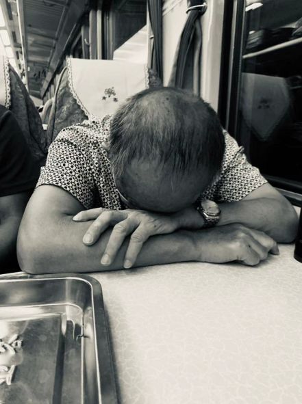(一位大叔正在深情凝视着车窗外)