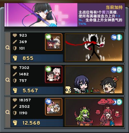 火柴人是灼烧施加群控,天使是叠强攻buff工具人,卡丁车加野球是万能充电宝,邪神追加伤害,程序员赌大招猜拳。缺点就是灼烧buff给的很慢,需要长时间战斗才能成型,更适用公园不适用主机关卡。