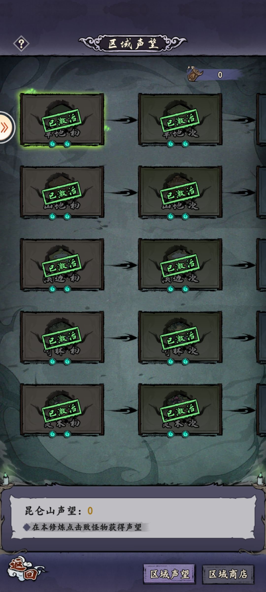 第五行是灵石和全体经验 在修为和功法经验加点完后除了事件和财富全部加 这个最后一个加全部格子经验加完再点气运然后是事件,事件优先点什么修道,悟道一类,最后就随便点了,青丘山和静心湖是一样的加点顺序。